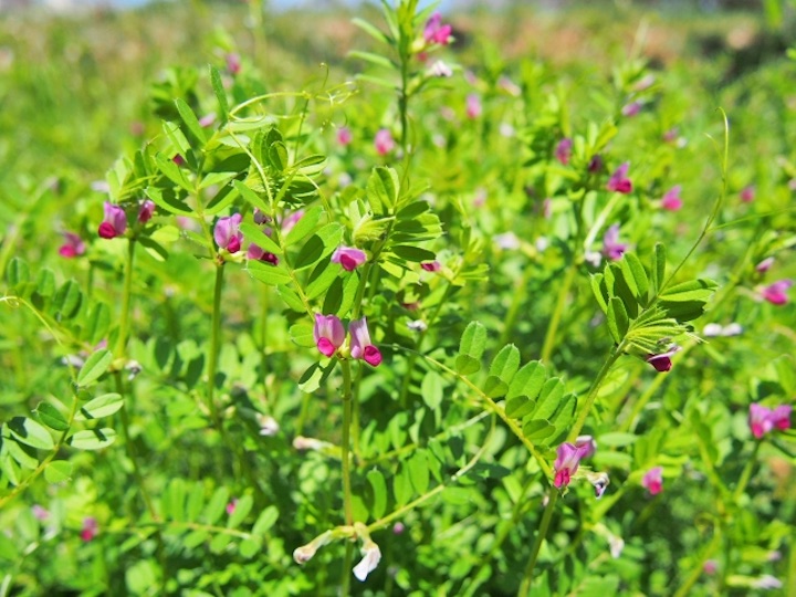 春になると雑草のようにどこでも伸びてくる野草。小さなエンドウのような豆がなりますが、食べるのは若い新芽・茎・豆の部分です。